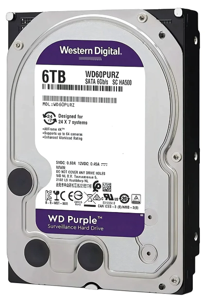 Mejora tu sistema de videovigilancia con el Disco Duro Interno 6TB WD Purple WD64PURZ. Compra ahora en Comercio Tecnológico y asegura la mejor calidad para tus proyectos de seguridad.