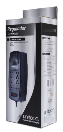 El Regulador Unitec de Voltaje U-2000 con 8 tomas es la solución ideal para cuidar tus aparatos eléctricos en el hogar u oficina. Diseñado para ofrecer una protección eficiente contra fluctuaciones de voltaje, este regulador garantiza que tus equipos funcionen de manera segura y prolonga su vida útil.