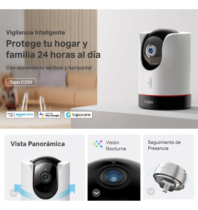 La Cámara Inteligente Wi-Fi Tapo C225 es la opción perfecta para quienes buscan una solución de seguridad avanzada y eficaz. No comprometas la seguridad de tu hogar; ¡adquiere la tuya hoy y mantén a salvo a tus seres queridos!